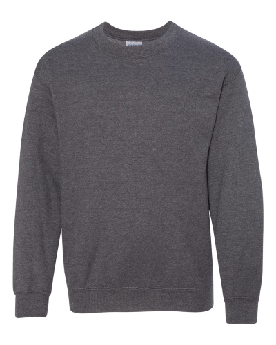 7.75 oz., 50/50 cotton/polyester Pill-resistant and softer air-jet spun yarn1x1 athletic rib knit collar, cuffs and waistband, with SpandexDouble-needle stitched collar, shoulders, armholes, cuffs and waistband